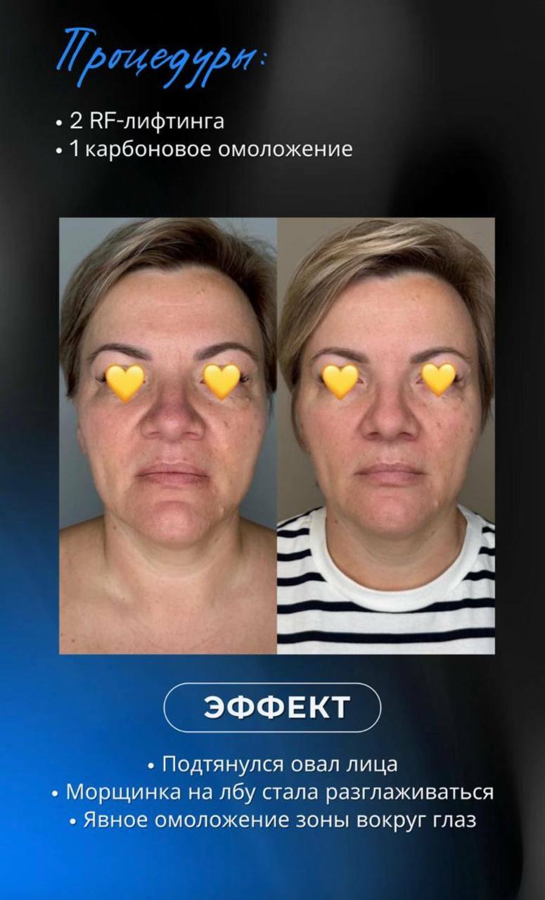 Показания RF лифтинга: Гусиные лапки, морщинки у глаз;Мимические морщины (лоб, носогубки, шея, декольте);Расширенные поры;Провисание и птоз кожи лица;Обновление эпидермиса, выравнивание текстуры поверхности кожи;Осветление пигментных пятен;Рубцы и стрии, растяжки.